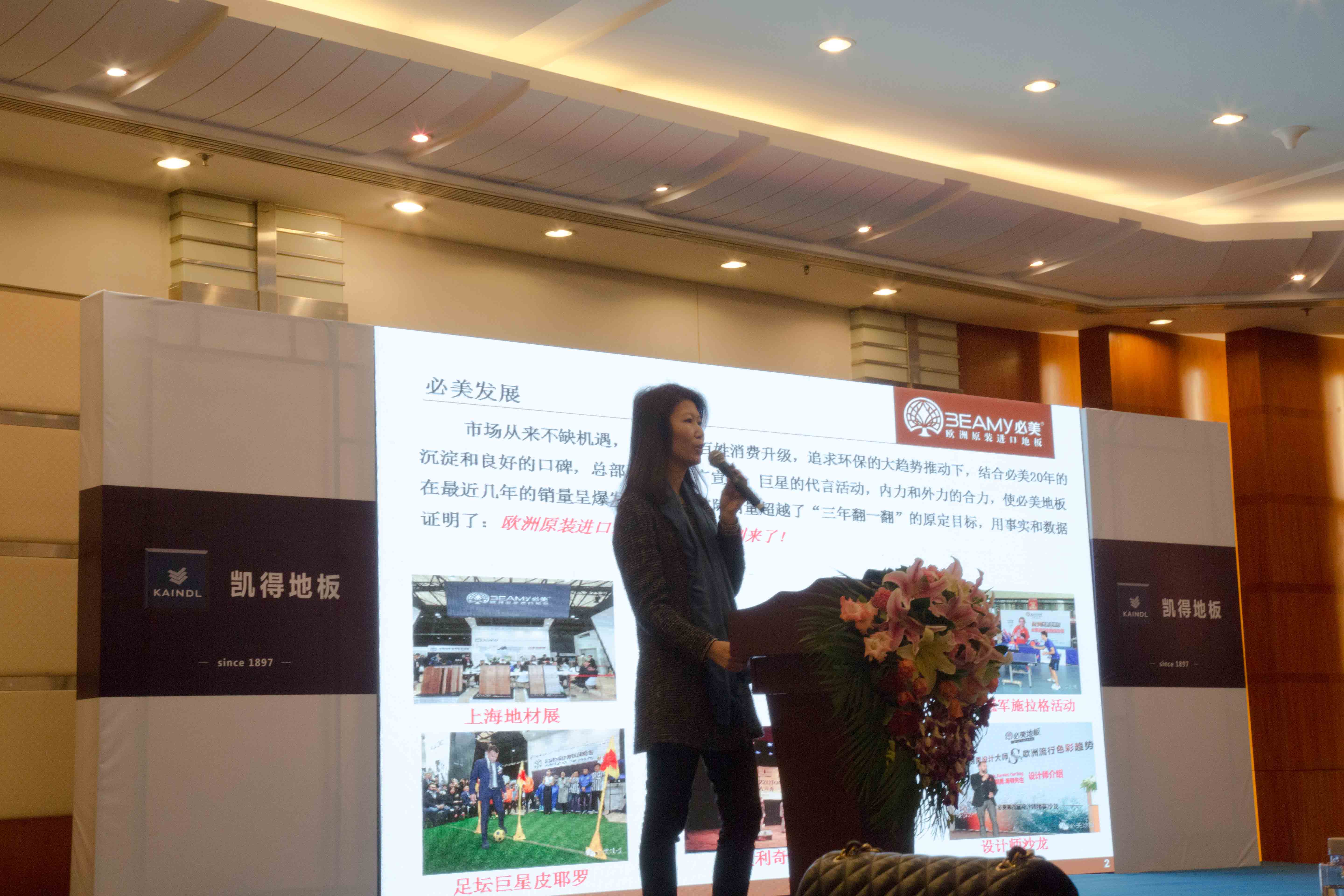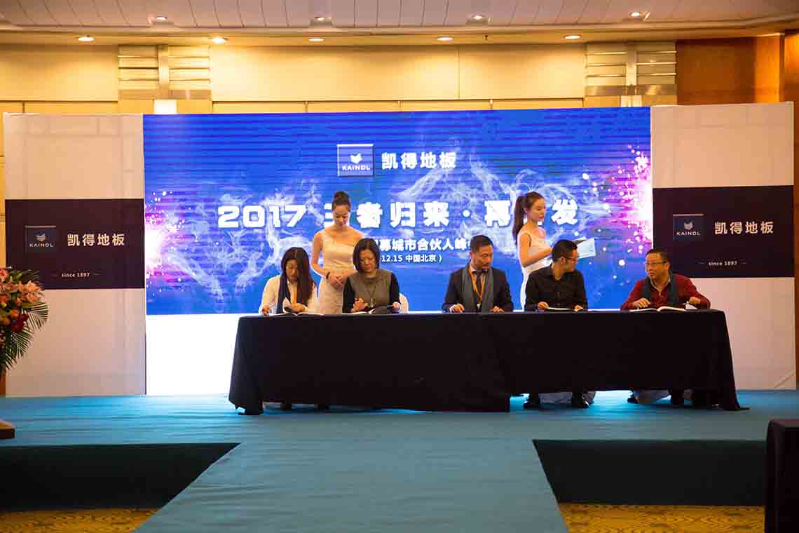 随后,北京居然之家金源店总经理高正元先生、必美国际集团销售部总经理陈凯君女士、壹串通品牌策划机构项目总监尚孟坤先生分别为这次凯得地板峰会致辞。重头戏环节,必美国际集团凯得品牌部经理程正位先生宣讲凯得营销规划、品牌运营及招商政策等事项,大大吸引了在场合伙人的注意。然后,孙总上台与特约经销商进行签约仪式并颁发特约经销商牌匾。整个峰会现场气氛轻松活跃,合伙人嘉宾们洽谈愉快。无图无真相,让我们来看看更多活动当天的现场照片: