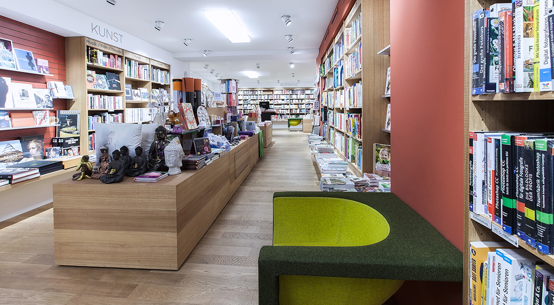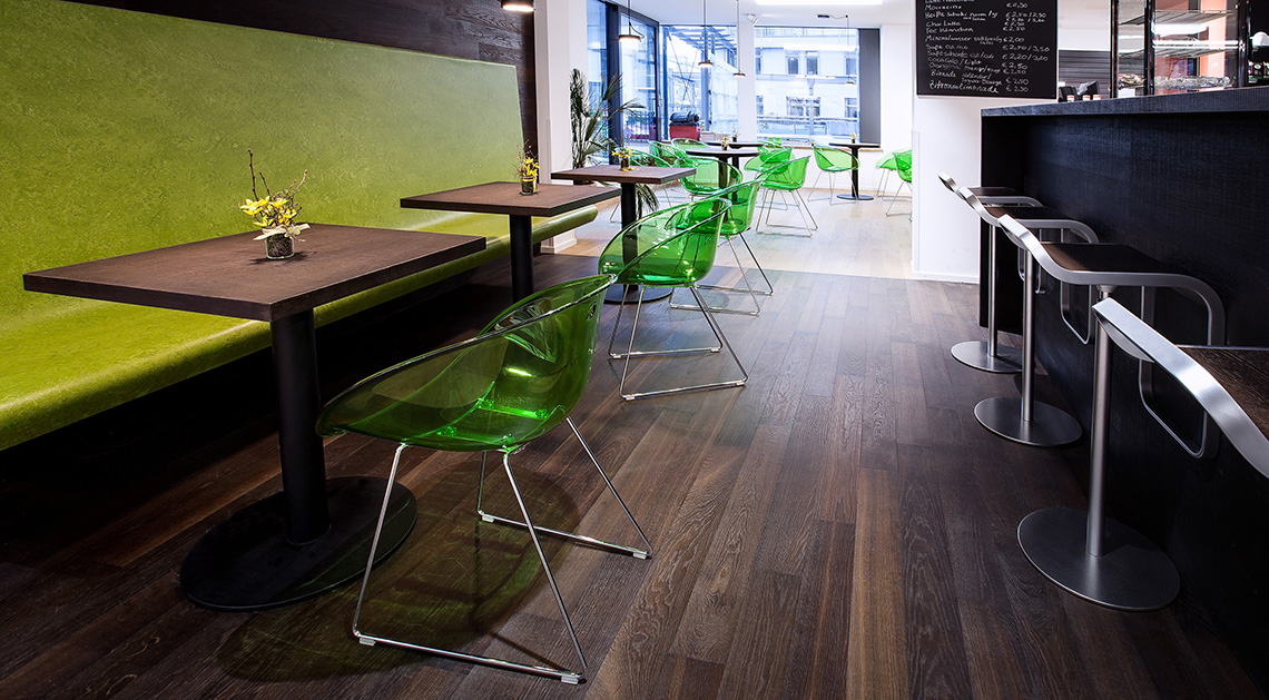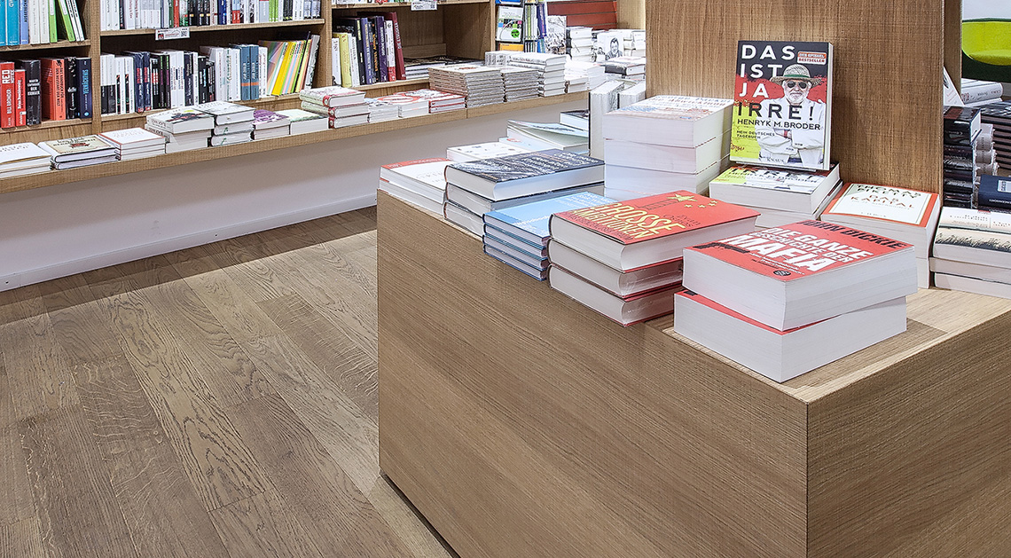 这里从不缺乏好书,缺的是与之相匹配的眼光。2015年夏天,Osiander在Lörrach(勒拉赫)镇开设了新支部,为了营造更加适合阅读的氛围,店里的地板、酒吧柜台面和店内的咖啡馆都是用了奥地利凯得橡木地板。展览区和阅读区以地板的颜色深浅进行区分,浅木色的阅读区开阔明朗,深色的阅读区和咖啡馆静谧平和,独特的凯得地板配上一缕书香气息,让Osiander精品书店更受人青睐,静静地拿起一本书躲开辐射进入文学的世界。