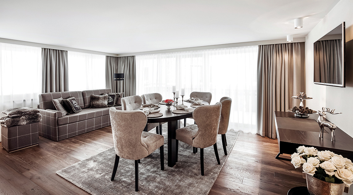 冬天的时候,透过玻璃窗还可以看到不远处山上的皑皑白雪,想找点刺激的还可以到户外堆雪人,和阿尔卑斯山来一次最亲密的邂逅。在漫天白雪中回头一望,整座Haus Eder Burgi公寓被橘黄色的灯光包围着,透出暖意……